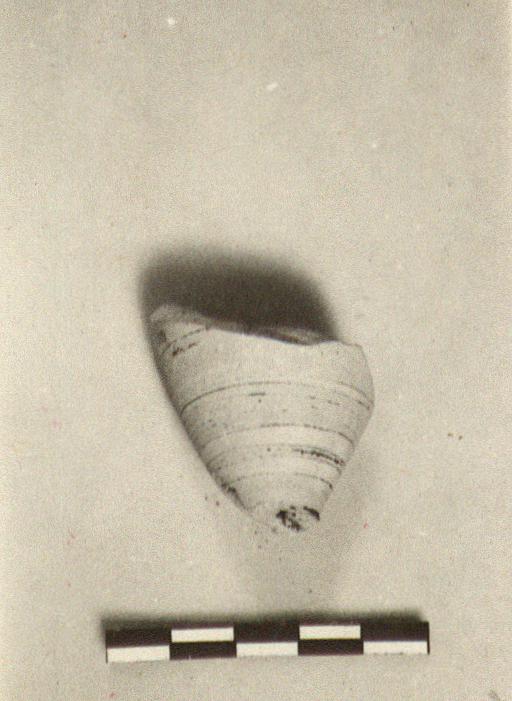 | Description: | Lower part only. Foot broken off. Archaic type B. Bands around bottom; leg of animal(?) moving to right. Protocorinthian. | |