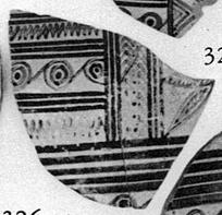 | Description: | Horizontal bands, zigzags, and rows of linked dotted circles. Hatched and leaved flower in a panel. Black to brownish glaze; also inside. | |