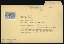 | Description: | Rather less of walls preserved than in P 8480 (Ι 897). A non-joining fragment from shoulder shows that this was fairly sharp. Shape and fabric similar to P 8480. Cf. Agora V, p. 15, under no. F 50, pl. 2. ADDENDA P 8480: Thin fabric. Fine pink clay, polished outside; inside water-proofed in orange-red. | |
