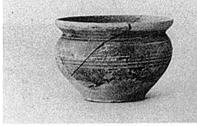 | Description: | Flat base; squat body, with medium-high shoulder marked by two horizontal grooves; low flaring rim, with plain lip, set off from body by a ridge. Clay deep buff at center, lighter at surfaces; yellowish-brown matte paint covers the inside, and the outside nearly down to the foot. | |