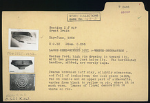 | Description: | Medium foot; high rim drawing in toward lip, with two grooves just below lip. The horizontal handles, ribbed, are merely lugs. Traces of floral decoration in white on rim. Coarse brownish-buff clay, slightly micaceous, and full of inclusions; the dull glaze-paint, red on inside and on upper part of side walls, varies from black to yellow on rim, where it is much worn. Late Roman D. | |
