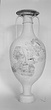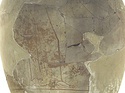 Description:   Fragmentary; the base is missing and most of the shoulder. Traces of a missing handle. Restored in plaster. On the neck, palmettes above a ridge; vertical lines below.