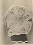 | Description: | From the bottom of an open dish, covered in and out with thin orange red glaze. Two circular grooves in the center; further out, four grooved, pointed leaves within a grooved circle. Pale buff clay. ADDENDA ?Western pre-sigillata. JWH | |