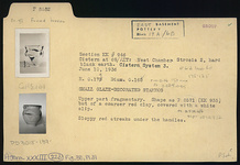 | Context: | Cistern system 3, west chamber, strosis 2, lower fill, hard black earth. | |
