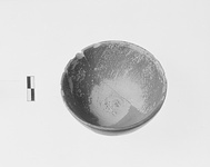 | Description: | Fragment of side missing; restored in plaster. Similar to P 8909 (Χ 58), but the foot somewhat higher and more flaring, and the glaze better preserved. A rough cross scratched inside the foot, beneath. Pergamene Ware. ADDENDA P 8909: Small bowl with ring foot and no change in curve of sides for rim. | |