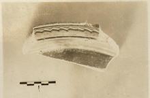 | Description: | Similar to P 9112 (ΠΘ 2254) ff., but shallower, with vertical wall and barely projecting rim. Wavy groove between straight grooves on top of rim. Brownish-pink clay; dull brown glaze inside and on rim; slip outside. ADDENDA P 9112: Shallow flat-bottomed basin with outward tilted side wall, flat projecting rim, and horizontal handles applied against rim. Four grooves on top of rim. | |