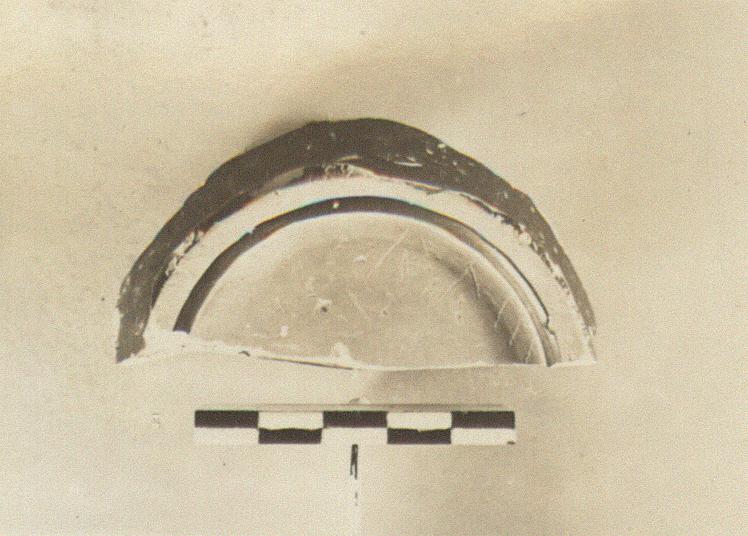 | Description: | Fragment from lower part of a black glazed Attic type skyhos; nearly half the ring foot, and the start of the walls preserved. Resting surface, and inside ring foot reserved. Inscribed inside: <graphic> | |