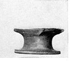 | Description: | Part of the floor and the cylindrical stem and flaring foot of an unglazed dish. A groove around the outer edge of the foot. Fine pinkish-buff clay; creamy slip. Unglazed. | |