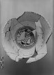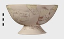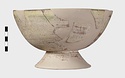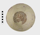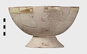 Description:   A deep bowl on a high conical base. Restored in plaster. In the center, a medallion, with a quatrefoil palmette ornament against an incised background.