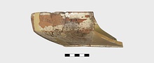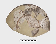 Light red clay, yellow glaze. White slip and thin glaze over all of exterior.