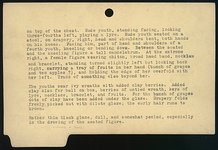 The youths wear ivy wreaths with added clay berries. Added clay also for ball on box, berries of untied wreath, keys of lyre, necklace, bracelet and fruits. For the bunch of grapes dots of clay have been added unter the glaze. Drapery folds freely picked out with dilute glaze; the curly hair runs to brown.