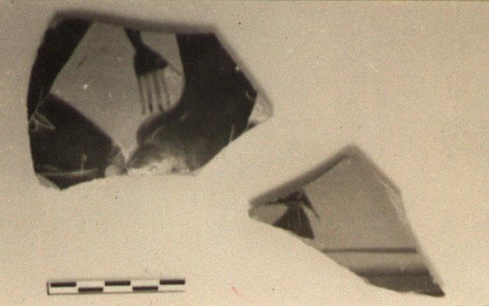 | Description: | a) Piece from upper wall with ridge at base of neck. On reserved panel, framed at left with a red line, head and fingers of left hand of runner, to right, preserved. b) and c) Two additional fragments found in going through sherds: b) the mid parts of two runners, right; c) the foot of a draped figure, left. Purple band below. ADDENDA Painter of the Louvre F 51. Cf. CVA Louvre, pl. 67, nos. 3, 4, 5, 6 (JDB, Summer 1953). | |