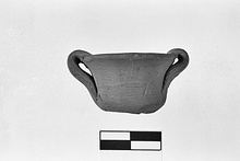 Dimensions:   Diam. (lip) 0.034, (w/handles) 0.042, (base) 0.019; H. 0.02