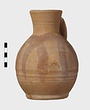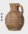 | Description: | Intact. Low ring foot; smooth body; round mouth; single vertical handle. Design of large overlapping semicircles painted on body in dull brown wash. Buff clay. Two others, without painted design, from same place, not catalogued. | |