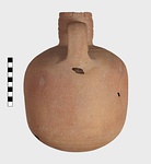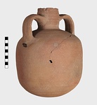 | Description: | Cracked, but complete, save for a few small holes. Rounded body; straight narrow neck with wheel ridges. Coarse reddish clay. | |