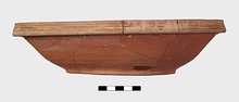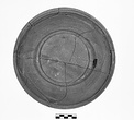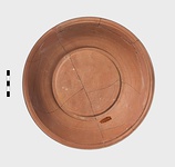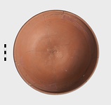 | Description: | Mended from many pieces; largely complete. An open bowl with low ring foot and low keeled ridged rim. Stamped(?) at center of floor: a bird looking back. Rather fine fabric. Dull red glaze inside and out. Late Roman C Bowl. ADDENDA Missing fragment of rim found in Cont. 2. Agora V, p. 116, no. M 350: "...stamped decoration: dog(?) to left, head turned back (the outlines of the figure are incuse, rather than in relief)." | |