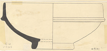 | Description: | Fragment of a deep Pergamene bowl on heavy ring foot, slightly convex sides and high carinated rim. About one-half of base and small piece of rim preserved. Restored in plaster. Buff clay and flaky red glaze. ADDENDA Variant of çandarle ware. | |