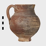 Dark red glaze on exterior, except toward base, and on most of interior.