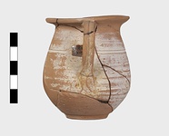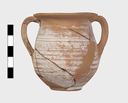| Description: | Mended from many fragments; much missing. Shape as P 9924 (Φ 341). Pinkish clay. Dull white paint, rather worn, on exterior. ADDENDA The rest of one handle, and other fragments, found in mending. | |