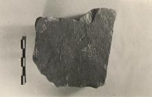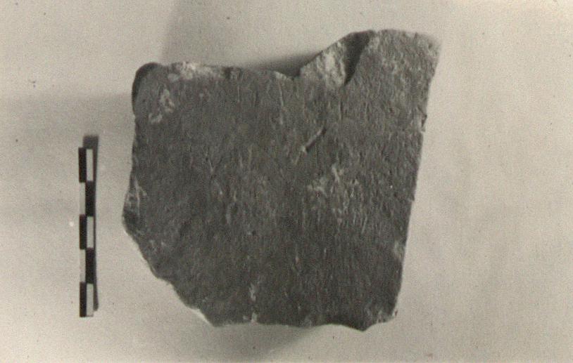 | Description: | Wall fragment from a large handmade pithos. Micaceous clay, red to grayish brown. Writing on outside: <graphic> | |