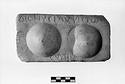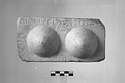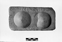 Description:   A plaque of Pentelic marble, dressed on it's face and edges. On the front two female breasts are represented in high relief. The inscription, in roughly cut characters ca. 0.013 m. high reads: