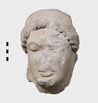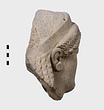 Description:   Broken off at neck; back of head (including most of the left ear) sliced off diagonally, and nose missing; surface considerably battered.