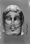 Description:   End of nose missing; broken below. Three very shallow holes perhaps for attachment, on underside of beard.