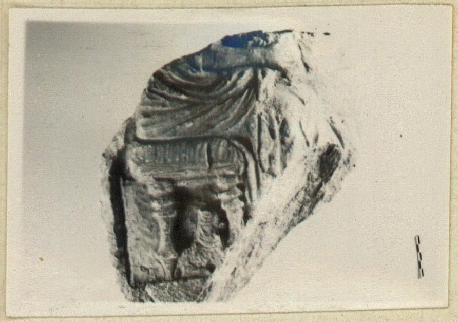 | Description: | Part of curved surface with a moderately low relief. Preserved is the middle part of a draped figure, seated right on a cushioned stool. Below the stool to the right sits a small curly-haired dog. Another similar dog is held in the figure's lap and a third (head only) looks up at the figure from in front. Pentelic marble. | |
