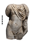 Description:   Preserved is the torso of a standing youth, nude except for the cloak fastened around his neck and falling at his left side.