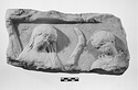 | Description: | Part of top preserved; otherwise broken. The heads and shoulders of two figures are preserved, and between them is a narrow object, a torch (?). The left-hand figure wears a veil over her head and appears to be holding an elongated object in her raised right hand. Ovolo and taenia above. Pentelic marble. | |
