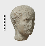 | Description: | Broken below neck. Surface for the most part very badly pitted by the acids from the cesspool, but very carefully finished where preserved. Life-sized head of a youth, with close-cropped curly hair; at center of back of head, a separate short curly strand done in higher relief. The face has a calm expression. Pentelic marble. Drilled for setting on base June 1950. | |