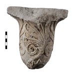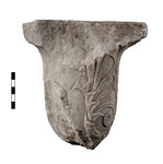 | Description: | Probably crowning member, i.e. mouth and flaring lip of a grave lekythos. Broken edges at bottom, but hole for attachment indicates that this piece was made separately and is almost complete as preserved; edges of top broken away; handle, which did not rise to top, broken away behind. Smooth top surface with shallow depression in center. Low relief decoration: palmettes and scrolls. Pentelic marble. | |