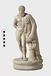 | Description: | Mended from several pieces, complete save minor chips. Farnese type, the figure leaning heavily on his club, but the body rendered as more youthful with the muscles less exaggerated. Pentelic (?) marble. | |