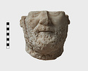 | Description: | Broken away above and behind. Preserved are the nose, mouth and chin of a life-sized bearded head. Back added from circled marbles in section Κ November 1953. Pentelic marble. Drilled for setting on base June 1950. | |