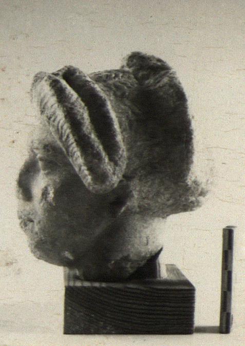 Description:   Broken off at neck, chipped at nose, mouth and chin, and considerably battered.