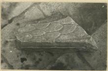 | Description: | The fragment comes from near the bottom of the proper right corner, preserving a little of the snaky body and a little of the lateral molding on the back of the pier. Both body and molding were left rough toward the bottom where they were not ordinarily visible. Pentelic marble. | |