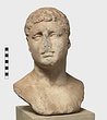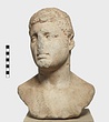 | Description: | A large piece missing at the back and left. Nose and mouth battered, ears chipped. Along the break, from the top of the head, is a vertical pinhole with traces of iron stain. The wear on front and back breaks suggests that they may be ancient. The marble somewhat stained from burning; root marks prominent on the neck. Head of a young man with close-cropped curly hair, somewhat sketchily rendered. Setting tongue rough-worked. Size and shaped of the bust Augustan. Pentelic marble. Drilled for setting June 1950. | |