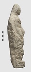 | Description: | Intact except for chip from base at proper left, and end of attribute held in left arm. Unfinished. Male figure standing on small plinth, left leg bent; nude except for a cloak looped across the chest and falling across the left arm. Long curling locks surmounted by a peaked cap. The back rough; the attributes to either side less fully worked than the figure: the right arm hangs at the side, holding drapery, or a lion's skin (?) hanging over a small pedestal. The bent left arm holds a short broad staff (?) which rests against the shoulder; lower end missing. ADDENDA Also interpreted as Castor. | |