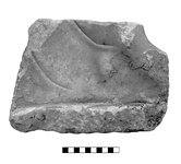 | Description: | Lower part of a statue. Preserved are the ends of five flat folds in the archaic manner, their slightly oblique vertical lines indicating motion to the left. At the left end there seems to be the indication of a foot holding back a sixth fold: curve for heel and swelling front and back very summarily rendered. Fragment flat and narrow, with drapery widening slightly towards a plinth, of which part is preserved. Workmanship very fair; surface carefully finished both at front and back. In the marble, below the lifted foot a cutting, ca. 0.03m. square in section, with drill holes in the four corners. Island marble, probably Parian. | |