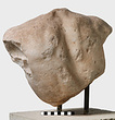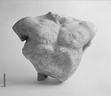 | Description: | Upper part of torso of a muscular male figure a little under life-size. Upper part of chest preserved with front starts of neck and left arm, and 0.02m. or 0.03m. of right arm. Head was inclined to lifted left shoulder; upper left arm fell close to body; right arm raised free from side. Easy three-dimension treatment of nude; muscles rendered by soft swellings all over surface except where pose would stretch skin tight. In the tradition of torso fragments of Tegea pediments. Surface rather carefully finished. Pentelic marble. | |