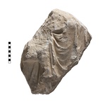| Description: | Apparently only a portion of the front surface is preserved. To the left the remains of a seated figure; chair seat with folds of drapery from its far and right sides. To the right a drapery indicating a standing figure lifting mantle with right hand. Drapery in shallow folds. Much battered. Pentelic marble. | |