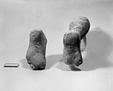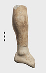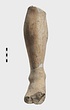 | Description: | Right leg, broken below knee and above ankle. Slight vertical ridge on back above ankle and slight roughness on back of calf indicate proximity of something. Heavy weathering on front and proper left side, cf. S 1953 (Ο 1046). Excellent modeling. From Stoa of Zeus. Pentelic marble. Joins foot of Nike among boxed fragments under S 312. Cf. also S 2335 (ΒΓ 101). ADDENDA Initially thought to perhaps belong to a figure (reclining?) of the same pediment as Herakles from Hephaisteion, since scale and quality of work are reminiscent. | |