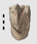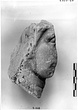 Description:   A small head, the left side has been sliced away, and the right side and top are broken; neck broken off at base. Only the right cheek and eye, and part of the neck, front and back, remain.