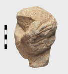 | Description: | Small head, the left side is preserved, but the eye is broken away and the surface is much weathered. Masses of hair are indicated by coarse shallow grooves, in contrast to the flesh, which seems to have been finished very smooth, but of which only the left cheek and neck remain. Pentelic marble. | |
