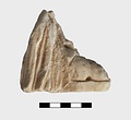 | Description: | Left foot on sandal; sole projecting from crinkly chiton hem. Under side of sole roughly finished and drapery undercut with chisel. Much weathered. Cf. Altar of Ares series. Pentelic marble. | |
