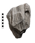 | Description: | Broken all around. Preserves very rough-picked back, and part of face with lower part of standing draped figure. Feet missing. Unfinished. Drapery roughly worked with chisel 0.007m. wide. Pentelic marble. | |