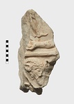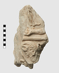Description:   Flake from front of cuirass statue of Roman emperor.