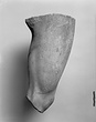| Description: | Broken just above start of buttocks and below knee. Thigh and knee from right leg of standing nude male figure, life-size or slightly under. Front surface weathered, back fresh. Carefully modeled and very carefully finished all over, cf. S 1836 (ΟΕ 277) and S 1837 (ΟΕ 278). Island marble. | |