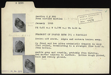 | Description: | Broken off above. Edges and corners broken away. On front and two sides archaistic drapery in very flat relief, terminating in a straight line 0.05m. from bottom. Marble gray and crumbly, probably from burning. Red mortar adheres to surface. Bottom rough-picked, back more evenly picked. Pentelic marble. | |