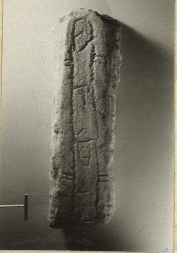 | Description: | Fully preserved. Roughly oblong chunk of marble with two herms, one above the other incised in it. Lower herm ithyphallic, upper not. Very crudely done. Pentelic marble. | |